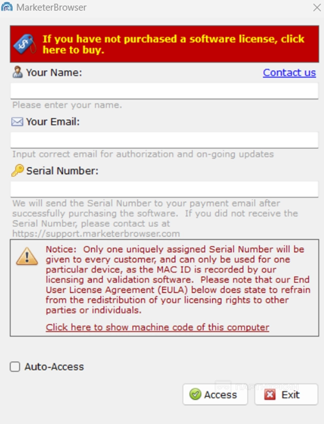 После установки программы система запросит логин (Name), адрес электронной почты и серийный номер.