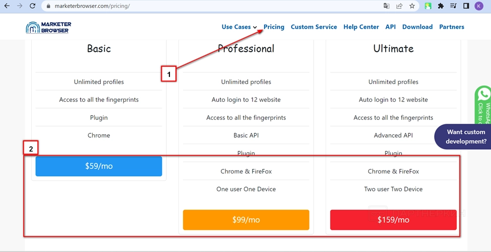 Ключ можно получить на почту только после оплаты. Для этого нужно перейти во вкладку Pricing (1) и выбрать один из тарифов (2). Откроется pdf-файл с вариантами пополнения баланса.