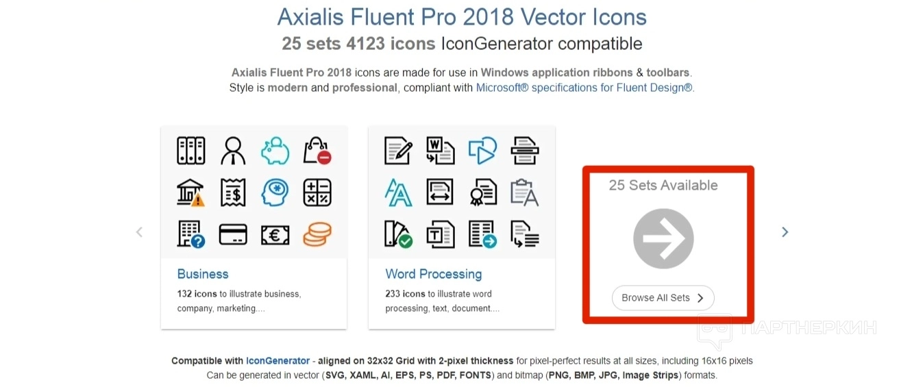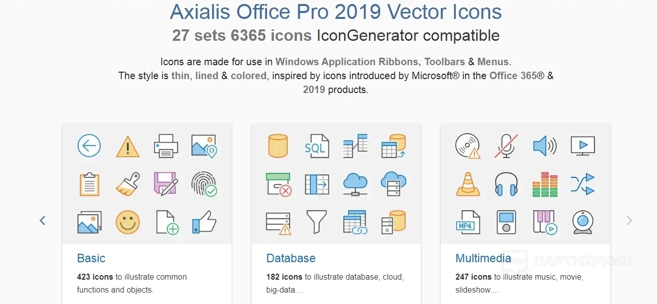 Некоторые из пакетов иконок в дальнейшем можно открывать в программном обеспечении, поэтому по умолчанию на странице каждого набора предлагается скачивание не только изображений, но и сразу же установочного файла программы.