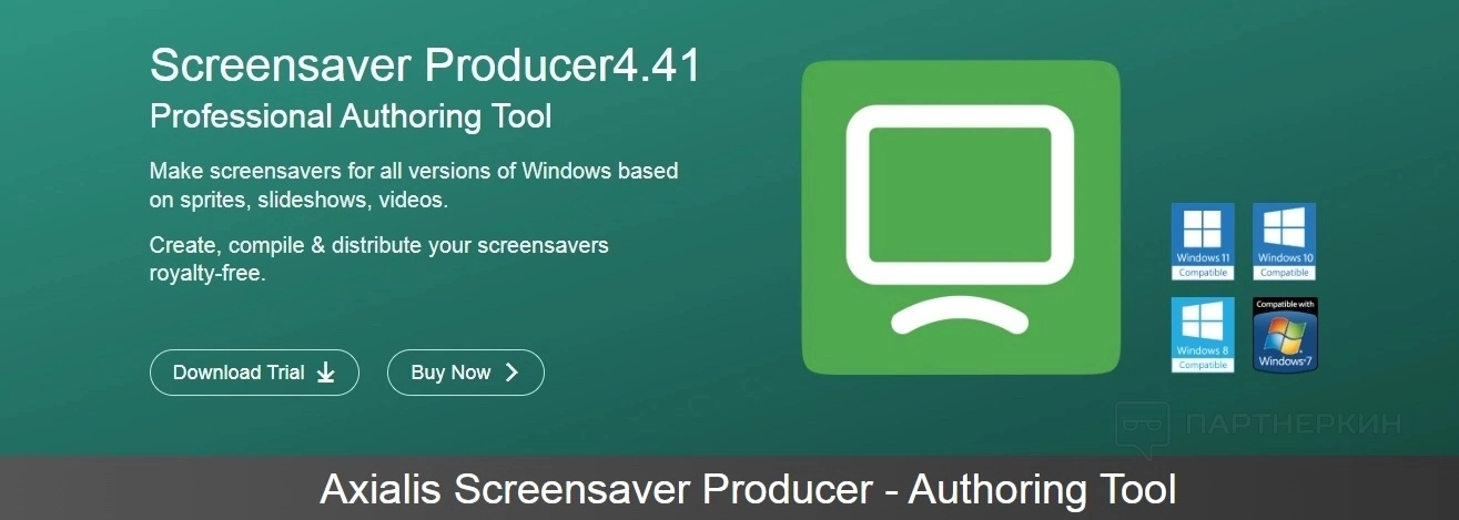 Axialis Screensaver Producer — создание статических и анимированных заставок для ПК с операционной системой Windows. Созданные проекты будут совместимы со всеми версиями ОС, в том числе и Vista, 7, 8, 10 (x32 и x64). С помощью плагинов подключается к Adobe Photoshop и Illustrator.