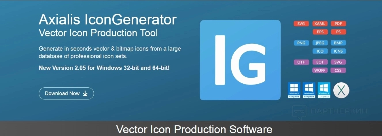 Axialis IconGenerator — программа для создания и редактирования иконок на базе уже существующих макетов. Поддерживает такие форматы как SVG, XAML, PDF, EPS и PS, а также PNG, BMP, JPEG, ICO, ICNS и Image Strip.