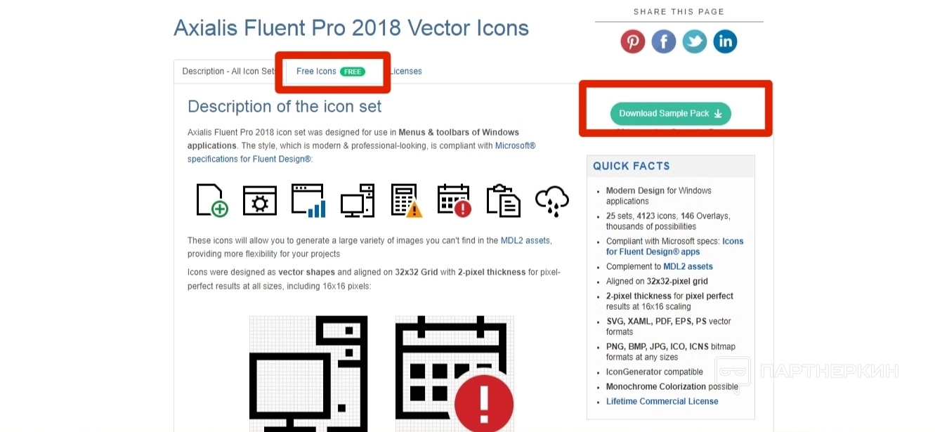 - скачать весь пакет иконок, но только после полной оплаты ( Download Pack ).