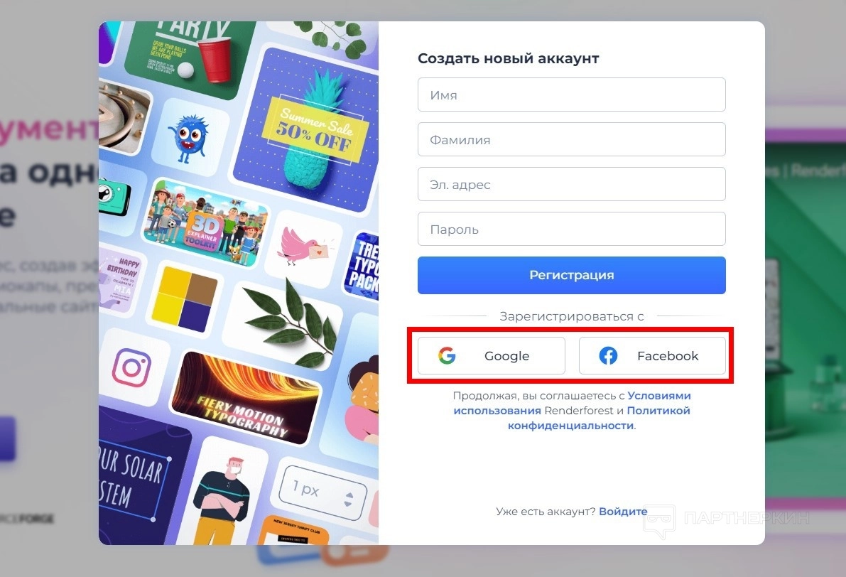 Также можно зарегистрировать учетную запись через сторонние аккаунты. Выберите платформу, согласитесь на обработку данных. Дальше сервис все сделает в автоматическом режиме.