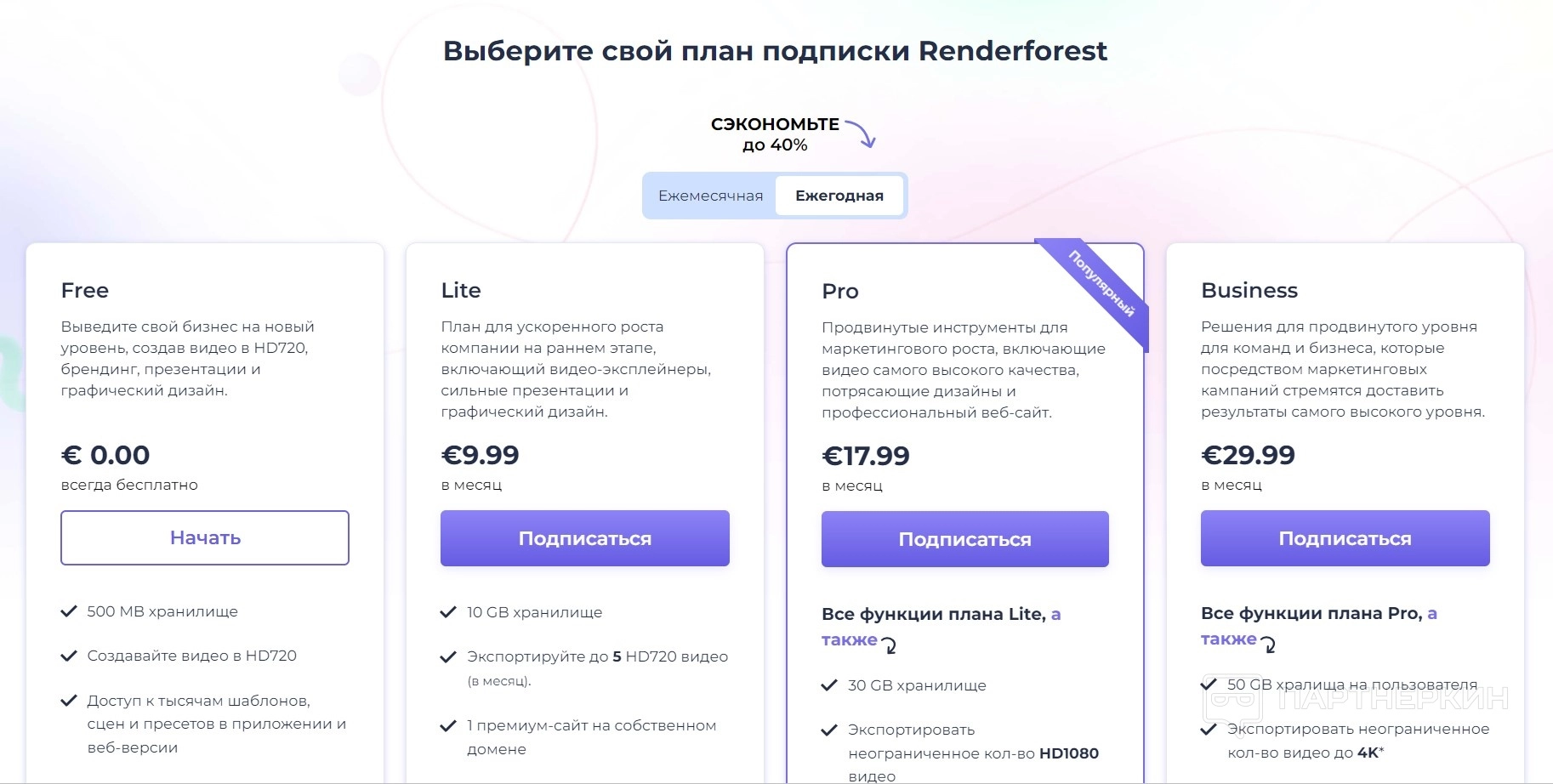 Стоимость: €29.99 в месяц.