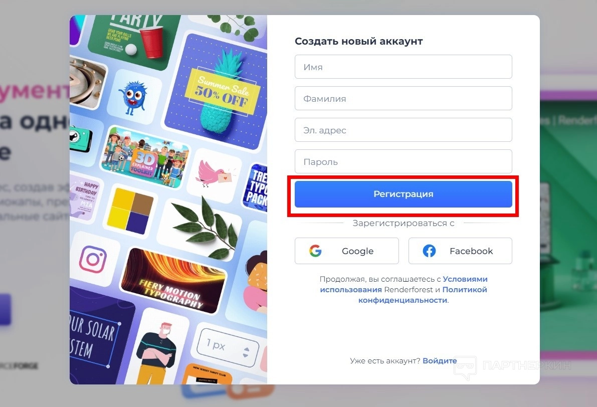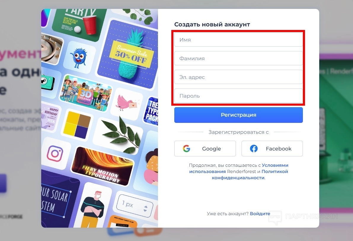 - Заполните форму: укажите ваши имя и фамилию, введите адрес электронной почты, придумайте пароль.