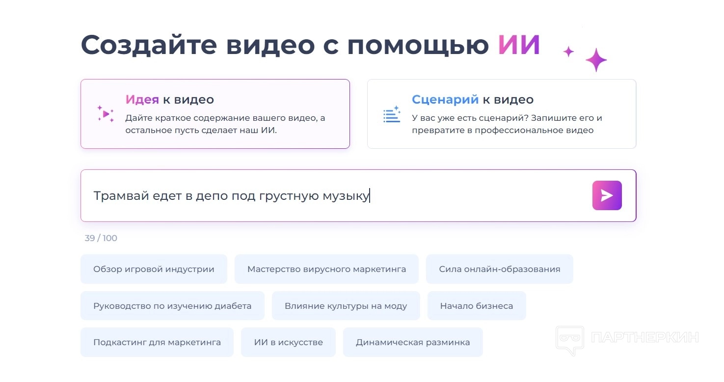 Инструмент преобразует текст в видео. Пользователям достаточно ввести идею, выбрать стиль и дать искусственному интеллекту возможность создать для них потрясающее видео всего за несколько минут. Инструмент обеспечивает простоту использования и высокое качество результатов.
