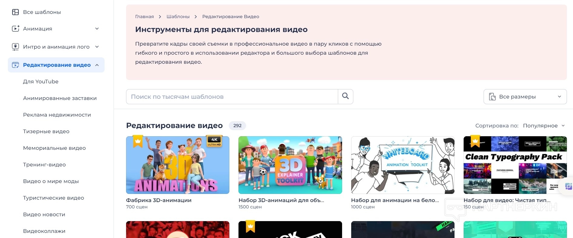 - Шаблоны видеорекламы. Помогают компаниям повысить популярность своих брендов и расширить охват аудитории. Они предназначены для создания ярких и эффективных маркетинговых кампаний. Пользователи могут легко адаптировать шаблоны под свои потребности, добавляя уникальный контент и стилизируя видео под свой бренд.