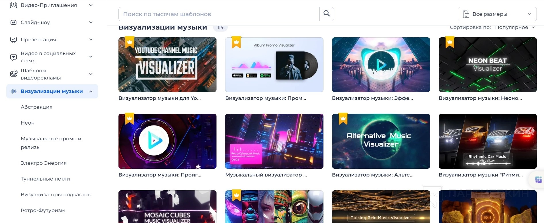 - Визуализация музыки. Онлайн-конструктор придает визуальное измерение музыкальной дорожке с помощью реактивных аудио-визуализаторов. Пользователи могут загрузить свои аудиофайлы в один из доступных шаблонов и обработать каждый тончайший ритм с помощью эффектов. Этот инструмент идеально подходит для продвижения новых синглов, музыкальных альбомов или каналов, помогая привлечь внимание аудитории и подчеркнуть уникальность звучания.