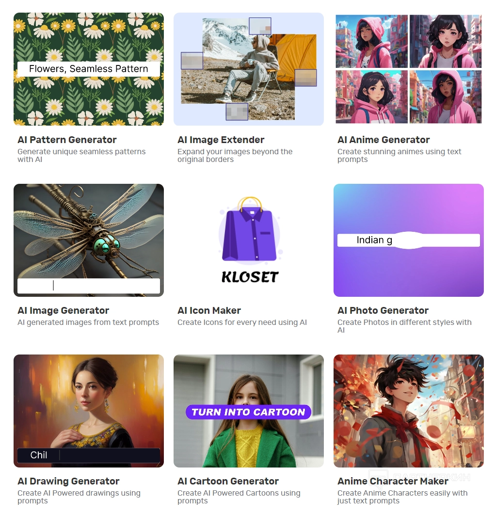 - AI Image Generator . Генерация изображений по текстовым запросам, позволяющая превращать описания в готовые картинки.