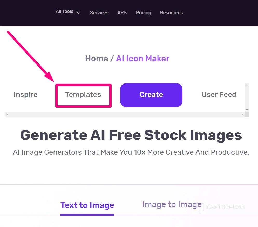 Оказавшись на странице генератора иконок, для начала нужно выбрать подходящий шаблон, нажав на кнопку «Templates», расположенную в списке над полем ввода в генераторе изображений.