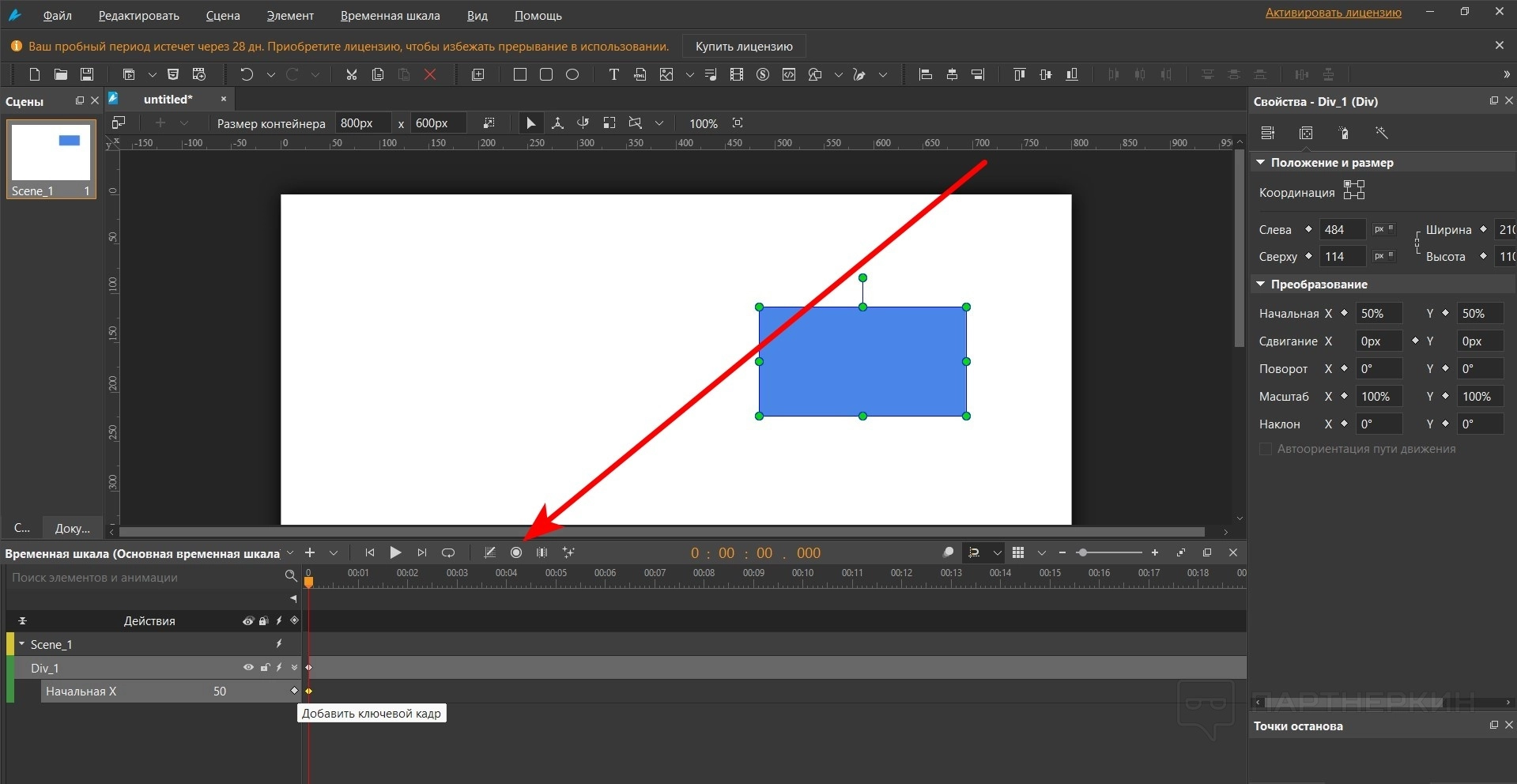 - Нажмите на кнопку «Авторежим ключевых кадров».