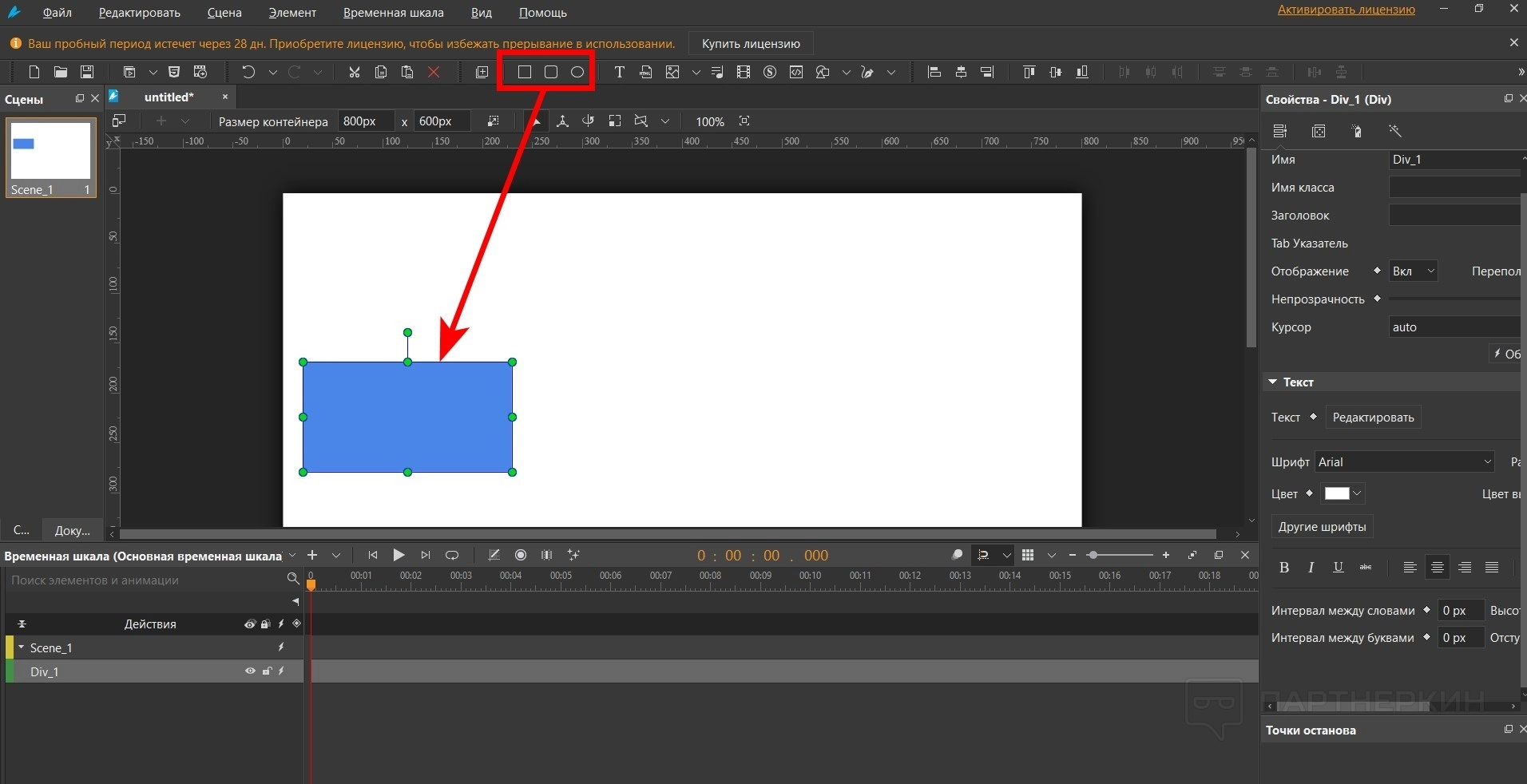 - Для начала можно выполнить самое простое действие. Например, заставить предмет двигаться. Выберите любую геометрическую фигуру и поставьте ее в любую точку холста.