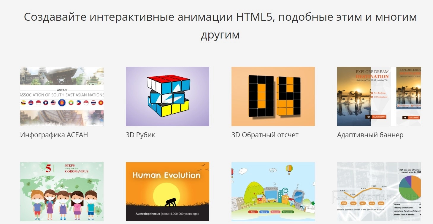 Возможность создать практически любую анимацию: начиная от баннеров и заканчивая полноценными мультфильмами. |