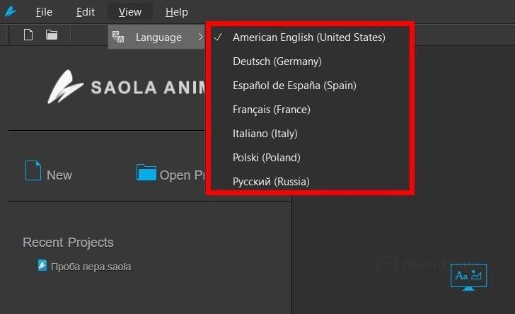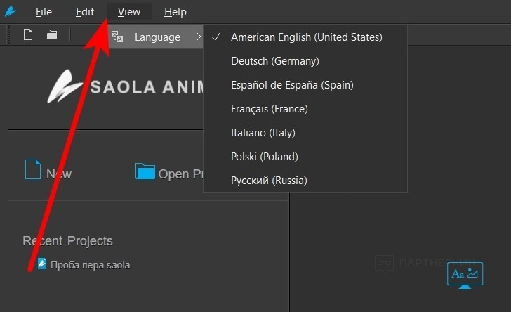 Если при запуске программы по умолчанию интерфейс будет отображаться на английском, поменяйте язык: