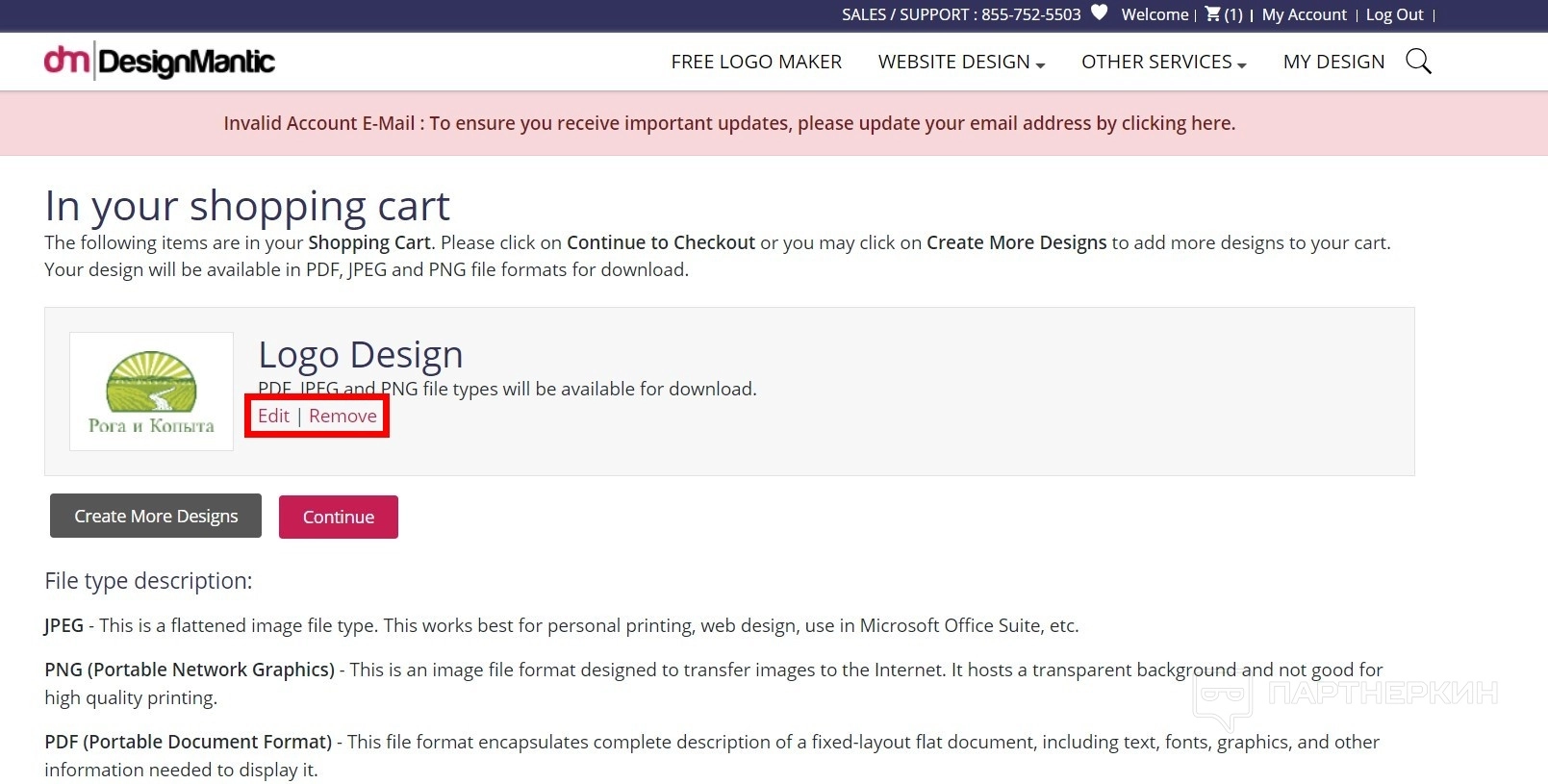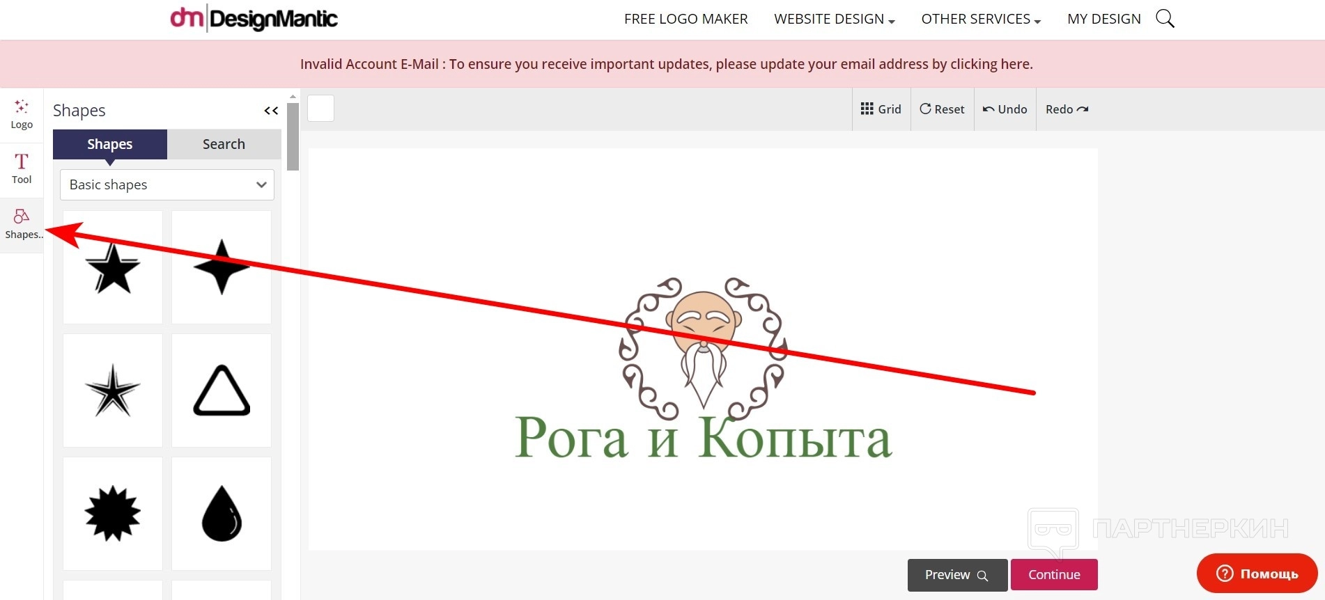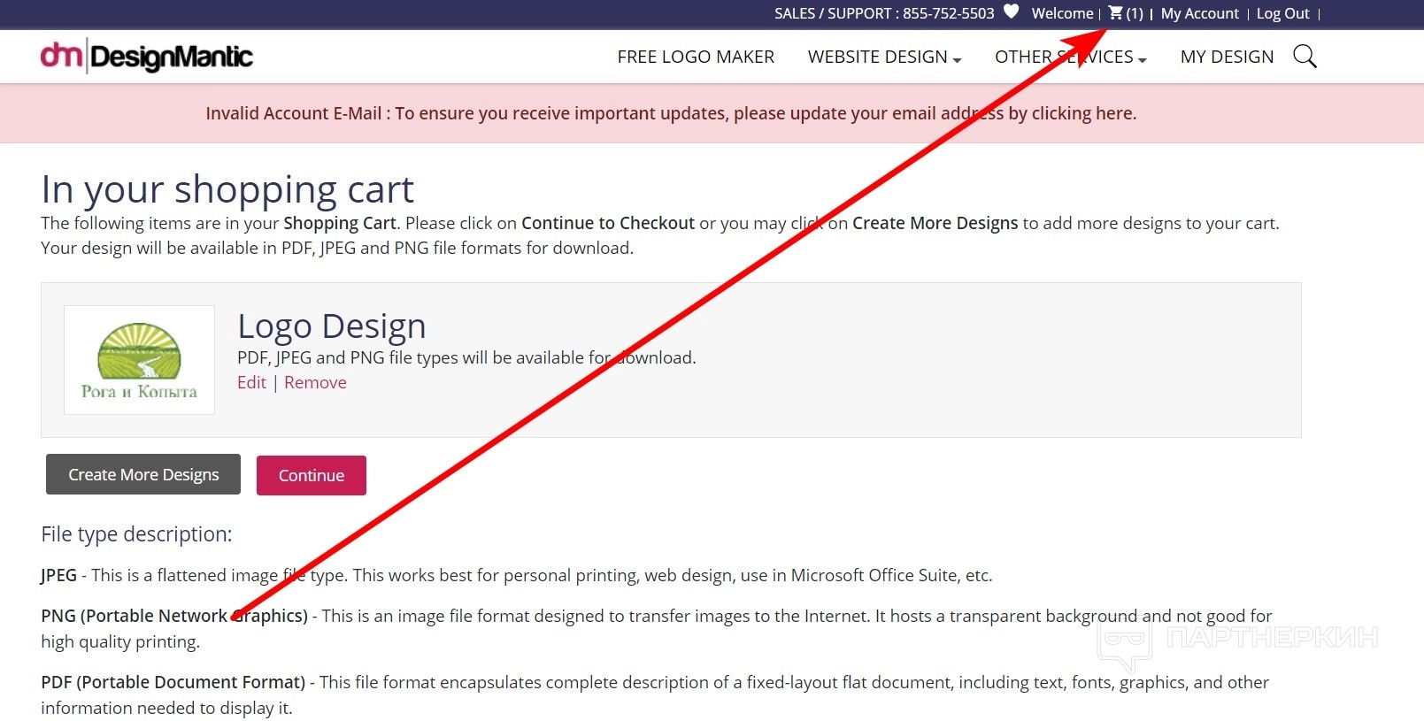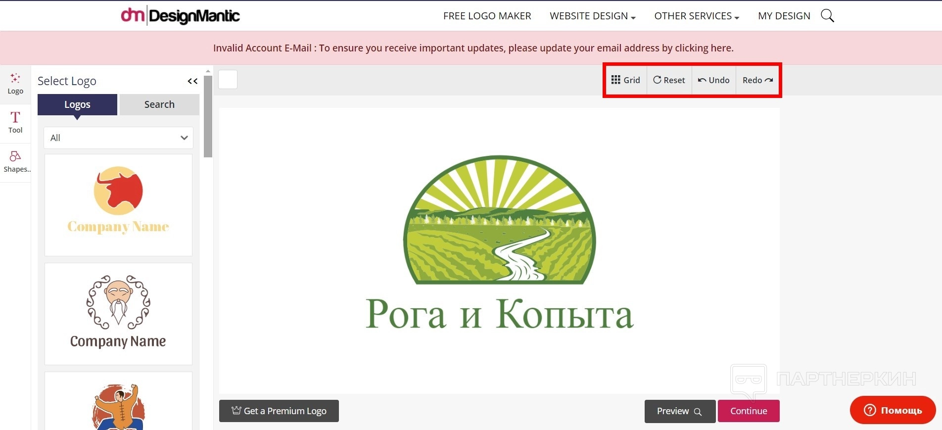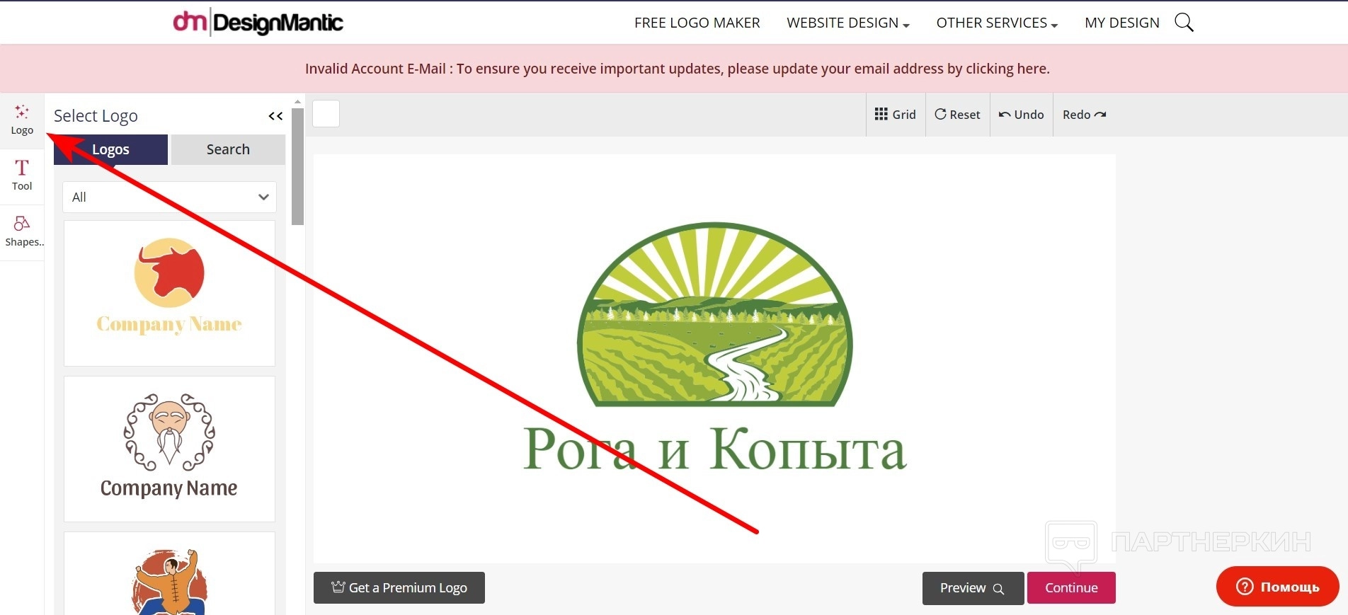 - В конструкторе нажмите на кнопку Continue . Логотип сохранится в личном кабинете.
