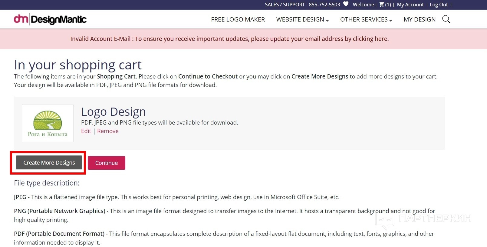 - Нажмите Create More Designs , чтобы создать новый логотип.