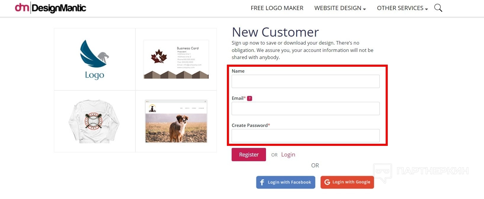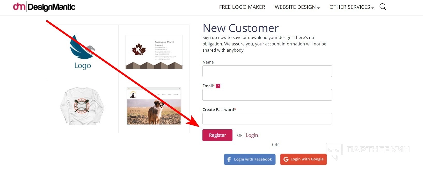 - Заполните регистрационную форму. Укажите ваше имя, email, придумайте пароль.