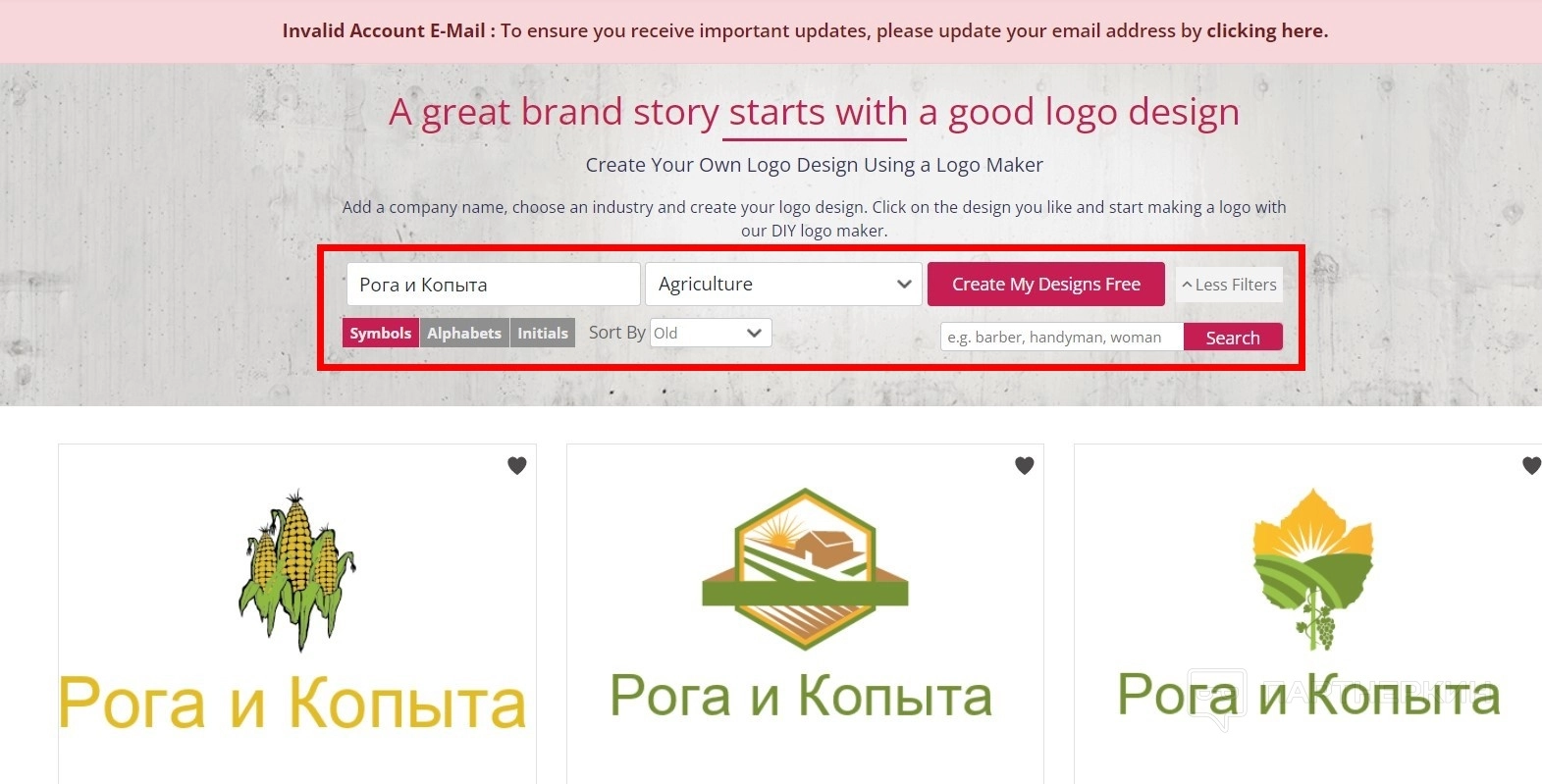 - Появятся новые логотипы. Их можно отсортировать по ключевым словам, времени создания и другим характеристикам. Также есть возможность сменить тематику и название бренда.