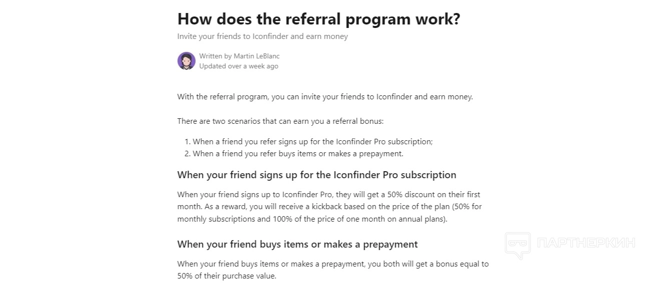 Iconfinderможно пассивно зарабатывать. Есть два сценария реферальной программы: награда за оформление подписки Pro в размере 50% за ежемесячный тариф и 100% за годовой (друг также получает до 50% скидки на оформление первого месяца) и награда за покупку товаров или внесение предоплаты (друг и владелец реферальной ссылки оба получают до 50% от стоимости покупки).