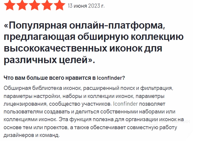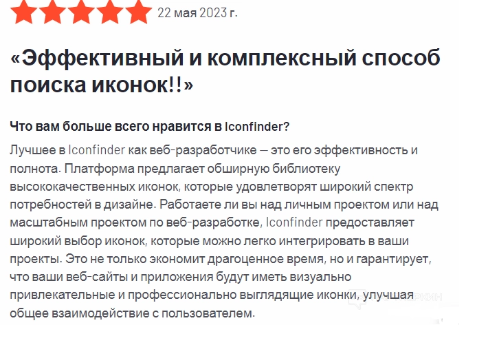 Другой пользователь также в восторге от простого и удобного интерфейса. Iconfinder используется им уже много лет и все его клиенты до сих пор оставались довольны полученным результатом:
