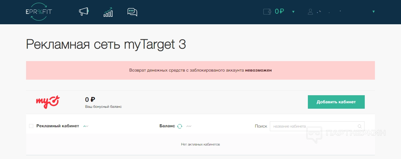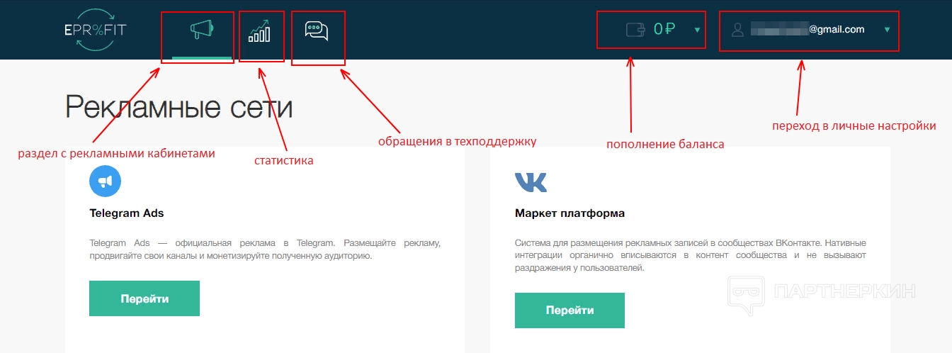EProfit – русскоязычный сервис, позволяющий вносить на счет рекламный бюджет и распределять его между несколькими кабинетами из единой рабочей панели. Помимо этого, через сайт также можно вести рекламные кампании, что значительно экономит время, так как позволяет отслеживать все результаты из одного кабинета.