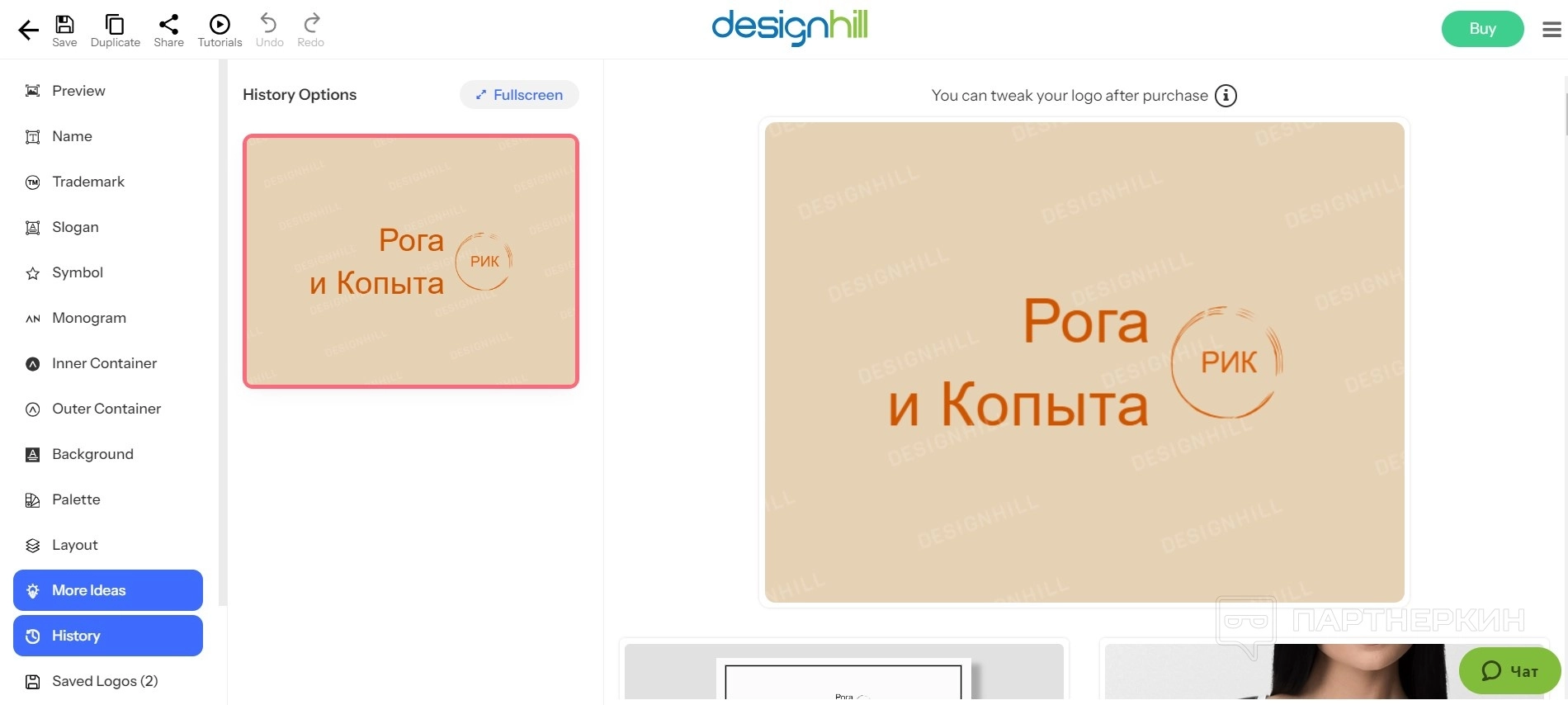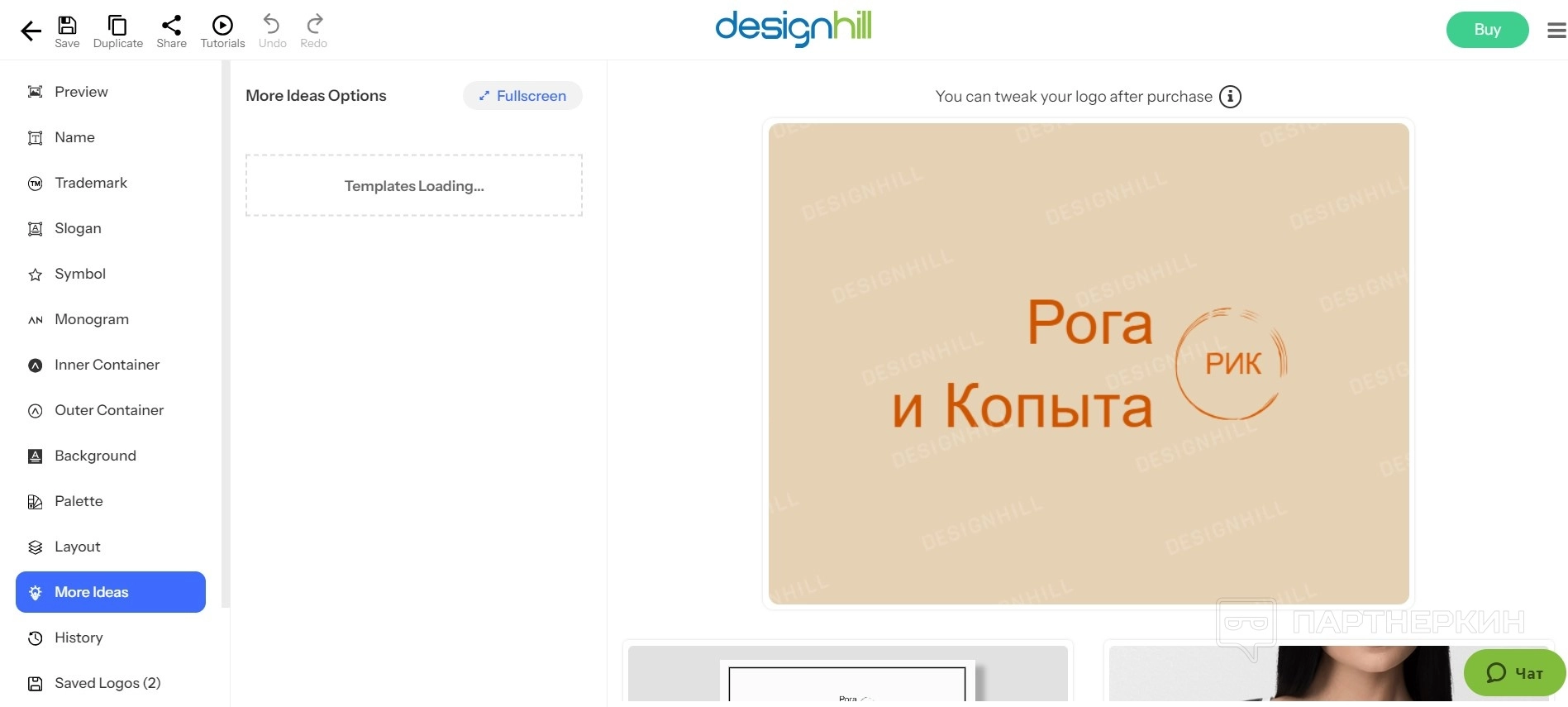 - More Ileals. Больше идей для логотипа. ИИ предложит самые смелые креативные идеи.