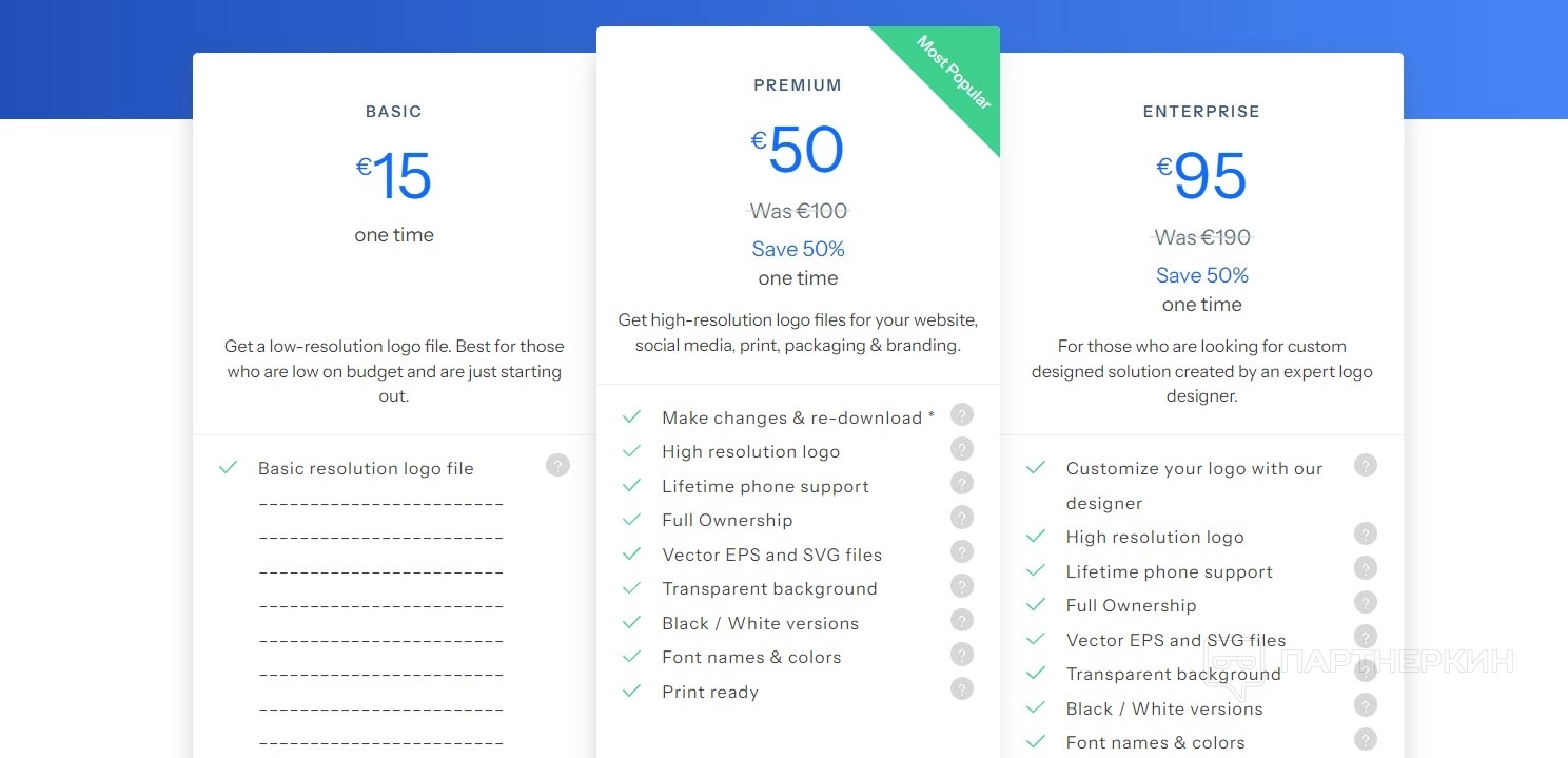 - Premium. Дает возможность настроить логотипы с высоким разрешением самостоятельно. Стоимость подписки — €50 в месяц.