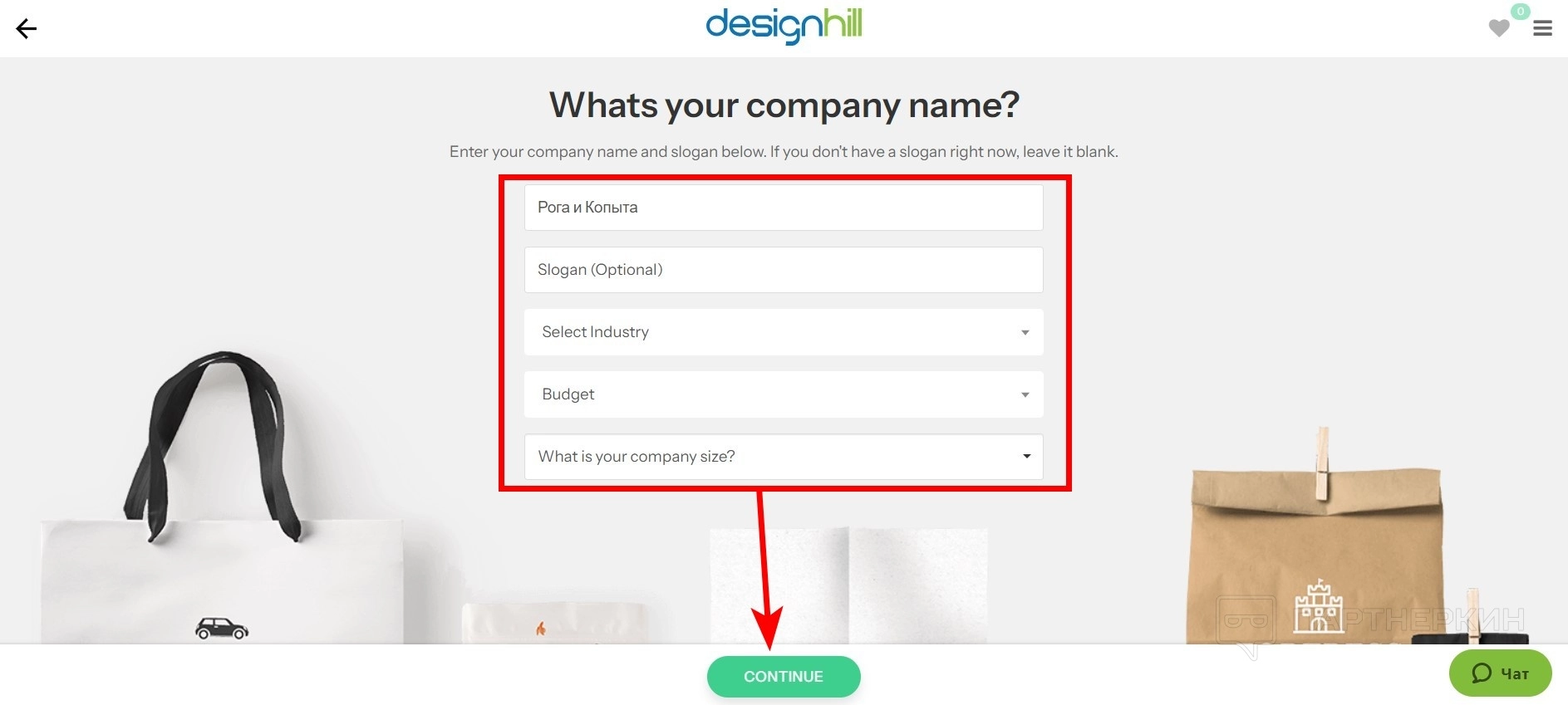 - На главной странице инструмента введите название своей компании и нажмите на иконку стрелки.