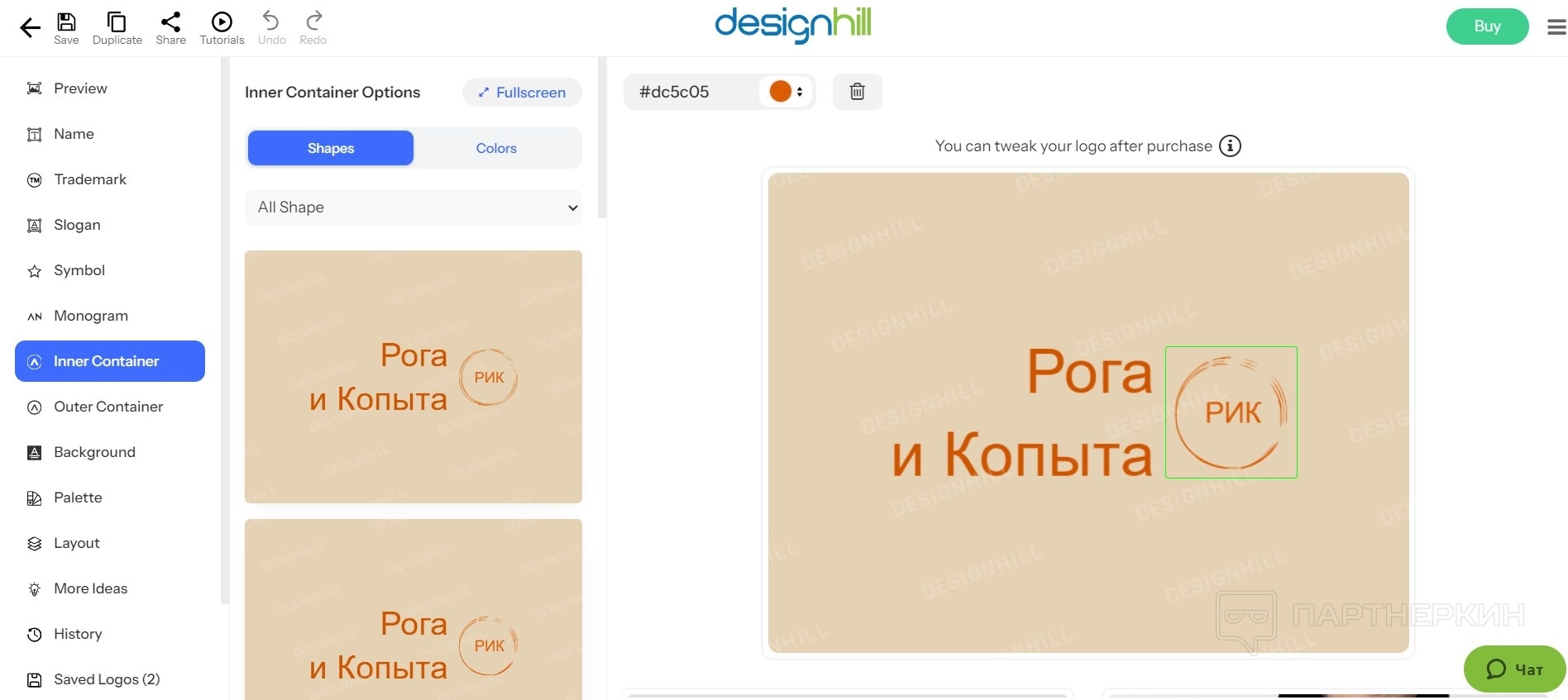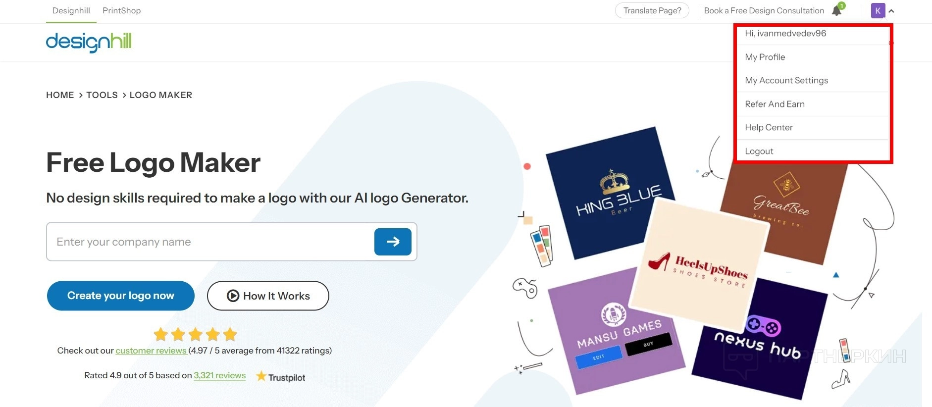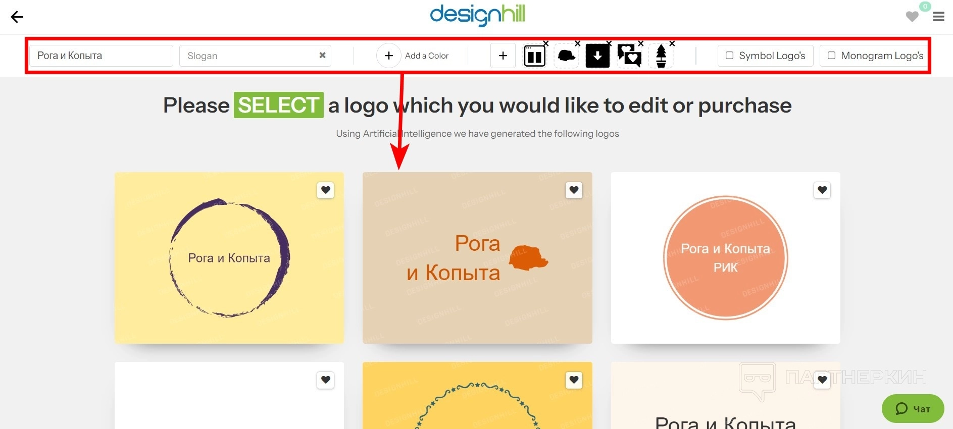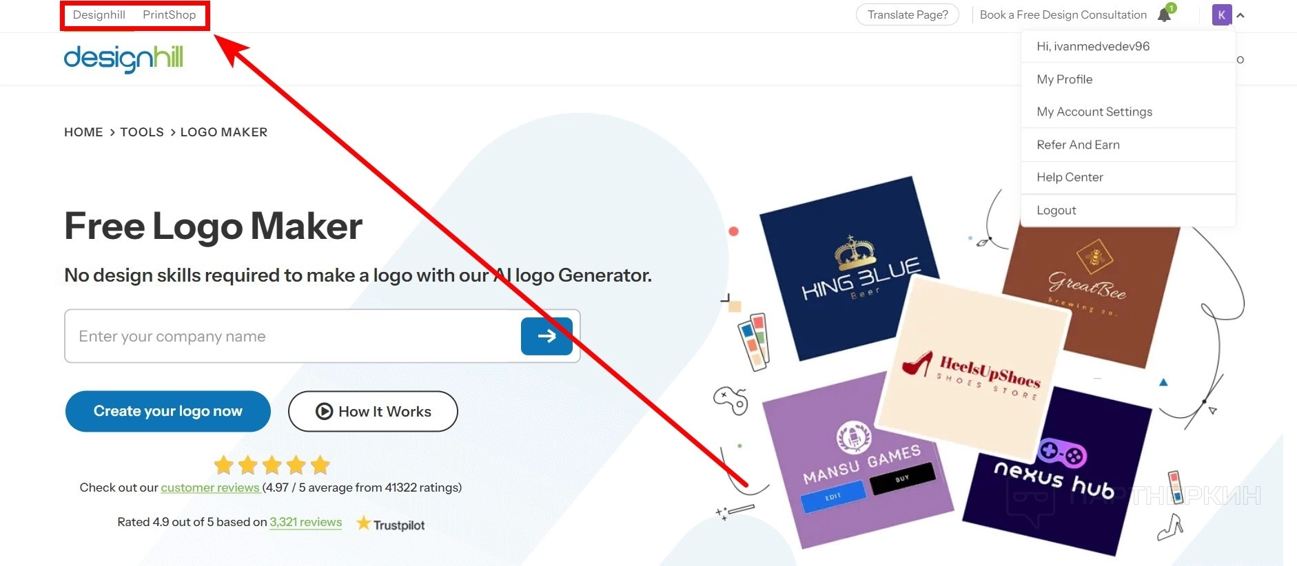 - Designhill. Это набор инструментов для создания логотипа с помощью ИИ.