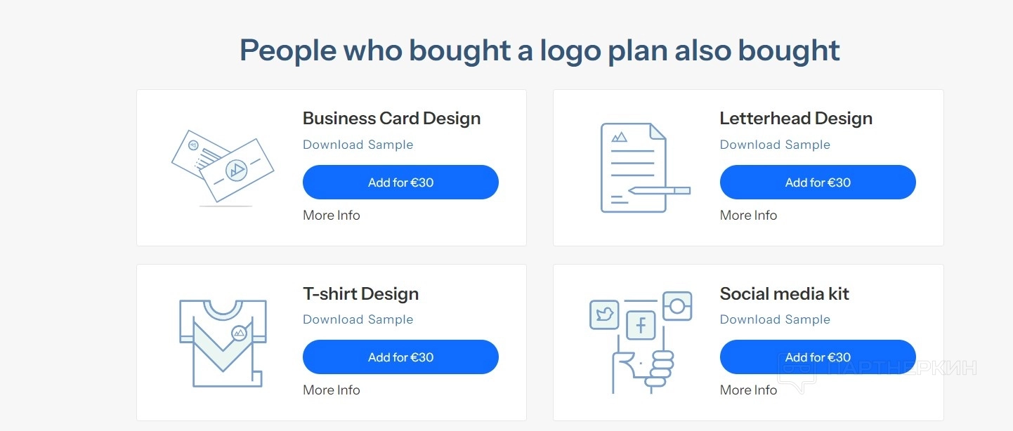 Приобретать логотипы можно поштучно. Стоимость каждого лого равна €15. При этом сам файл будет низкого разрешения и без дополнительных опций. Подходит такой вариант для компаний и фрилансеров с низким бюджетом.