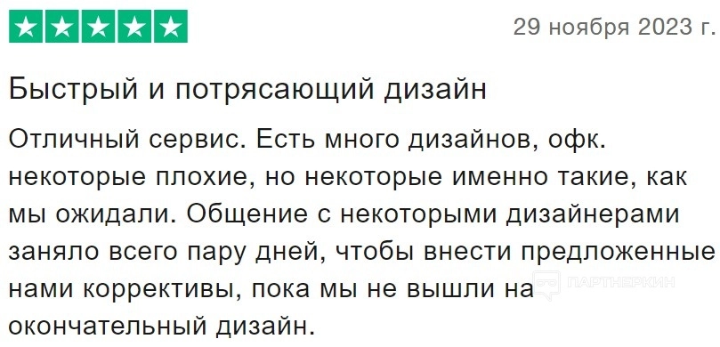 Пользователи также отмечают, что общение с дизайнерами на платформе всегда простое и продуктивное. Достаточно объяснить, к какому типу бизнеса относится компания, какие результаты ожидаются, и чем бизнес отличается от конкурентов, чтобы получить более 100 уникальных дизайнерских решений. Это помогает выбрать наиболее подходящий вариант для бренда, экономя время и ресурсы.