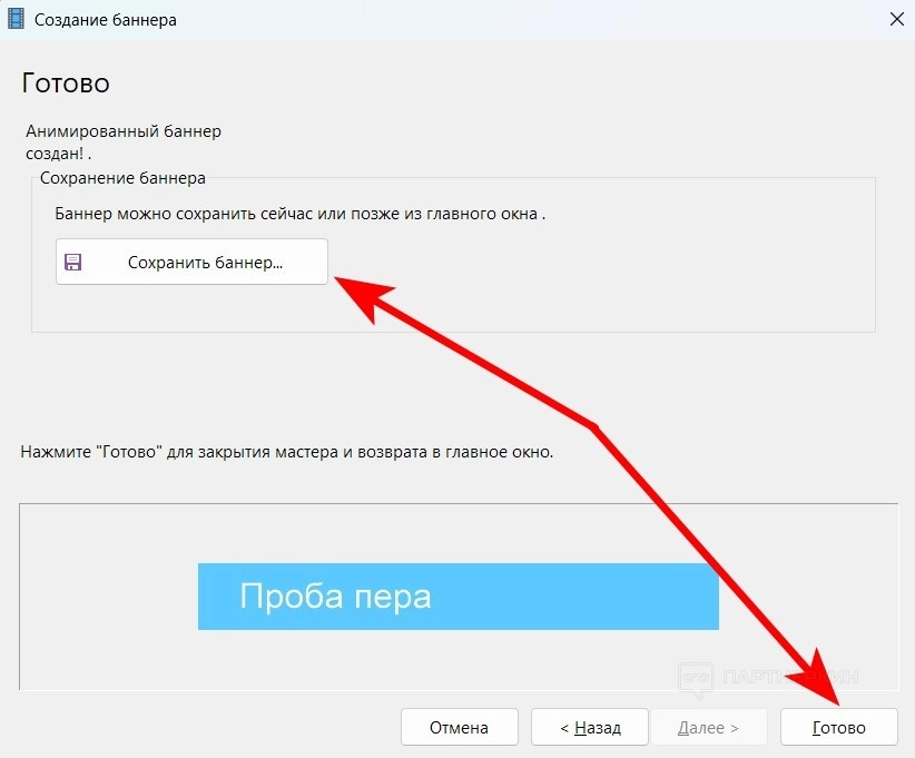 - При желании, готовый баннер можно сохранить на жесткий диск или же отправить его на редактирование.