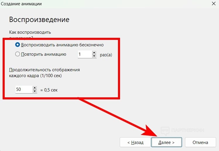 - Настройте функции, как часто будет воспроизводиться анимация.