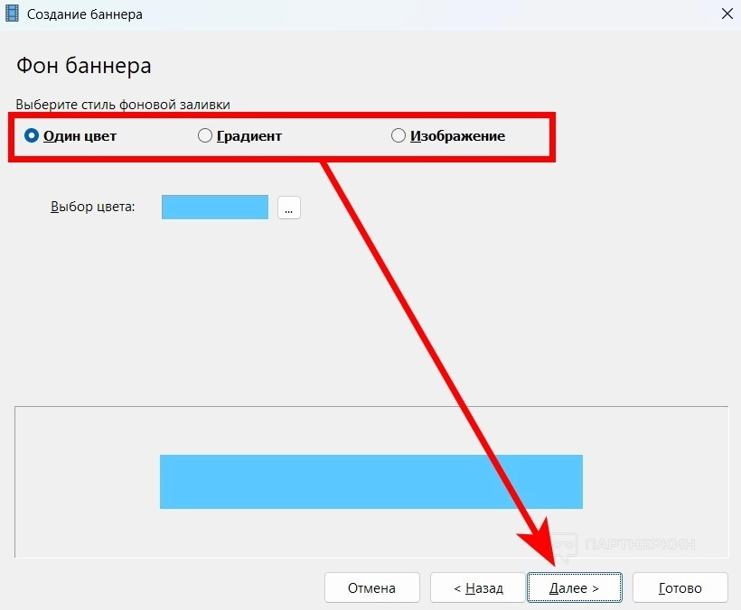 - С помощью указания фона для баннера можно выбрать один из вариантов, например градиент или свое изображение.