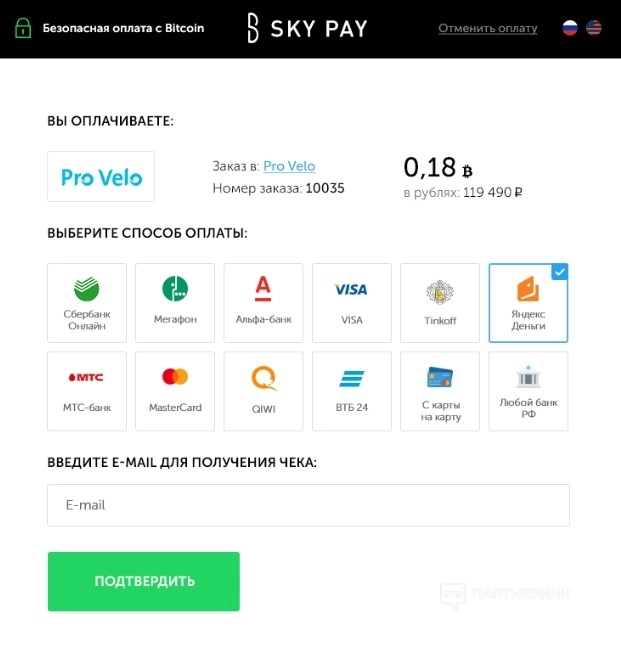 SKY CRYPTO обслуживает не только физических, но и юридических лиц, предоставляя услугу SKY PAY. Благодаря этой функции, каждый клиент может безопасно и на 100% анонимно осуществлять оплату в рублях и других фиатных валютах. Сумма мгновенно конвертируется в крипту: магазин получает средства в желаемом цифровом виде, например, в биткоинах.