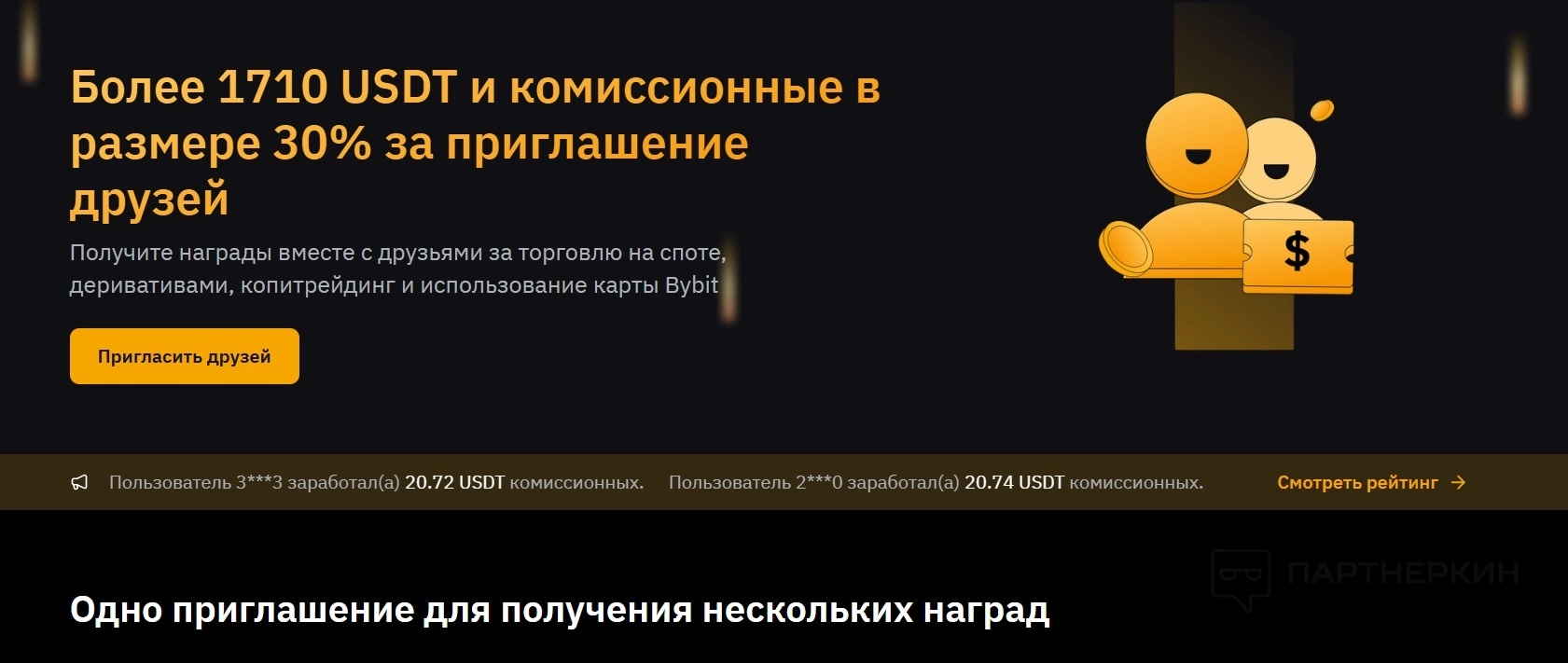 Реферальная программа предоставляет возможность зарабатывать значительные награды и комиссионные, приглашая друзей. Вы можете получить до 1710 USDT и 30% комиссионных за каждого приглашенного друга, который начинает пользоваться платформой Bybit.