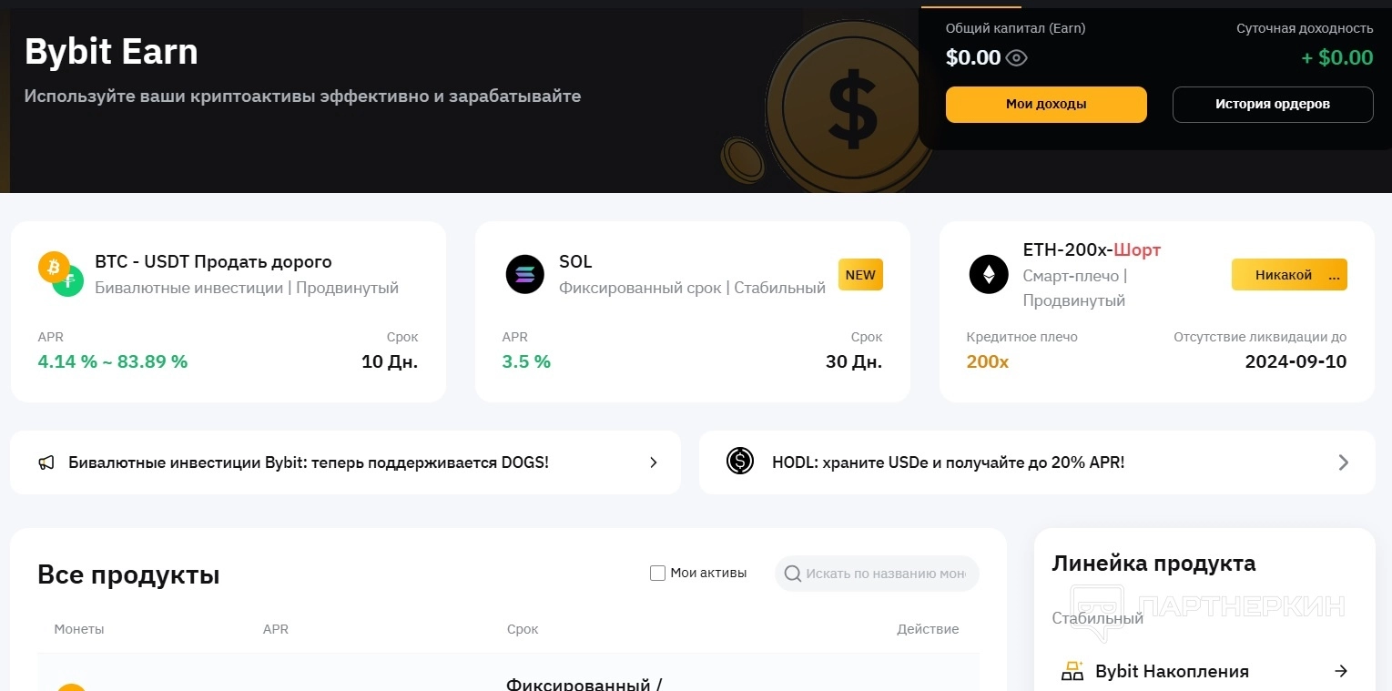 Раздел Bybit Earn предоставляет разнообразные инструменты и стратегии для заработка на криптоактивах, позволяя пользователям выбирать подходящие варианты в зависимости от инвестиционных целей и уровня риска.