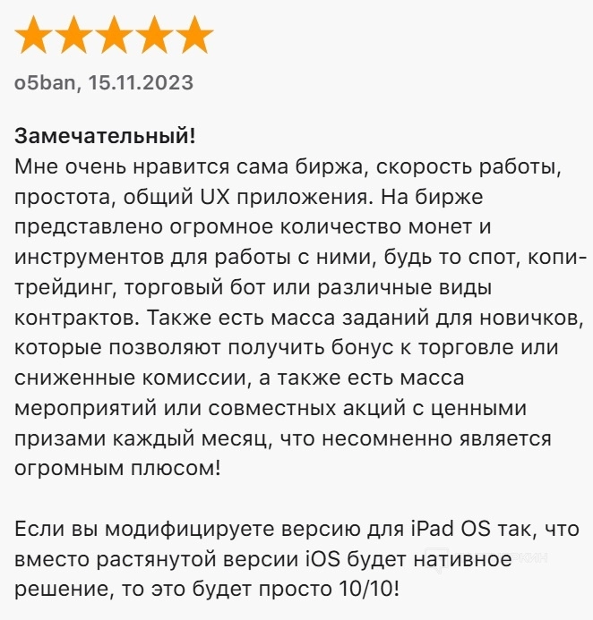 Что касается самой биржи и её сервисов, включая Bybit Trading Bot, пользователи хвалят приложение биржи за отличный интерфейс, функциональность и саму биржу за отличные возможности.