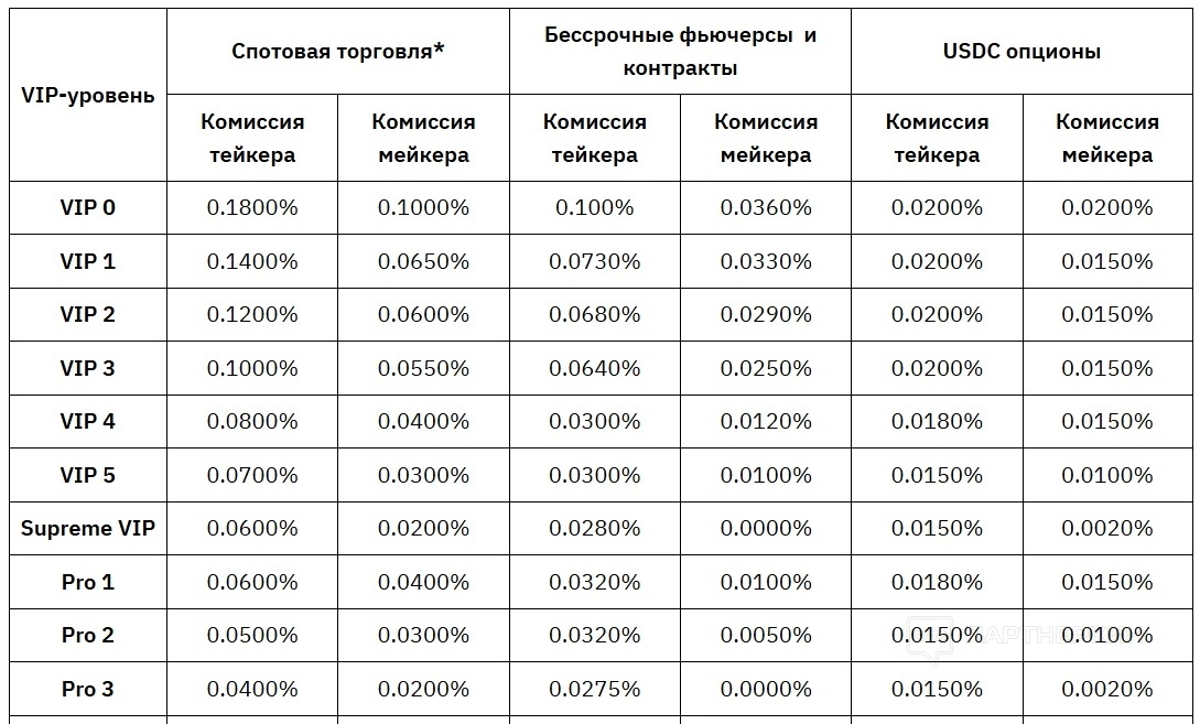 Комиссии на более высоких VIP уровнях (VIP 2 и выше, включая VIP 3, VIP 4, VIP 5, VIP Supreme, а также от Pro 1 до Pro 6) снижаются еще больше, что позволяет пользователям, имеющим высокий объем торговли или значительный баланс активов, получать дополнительные скидки.