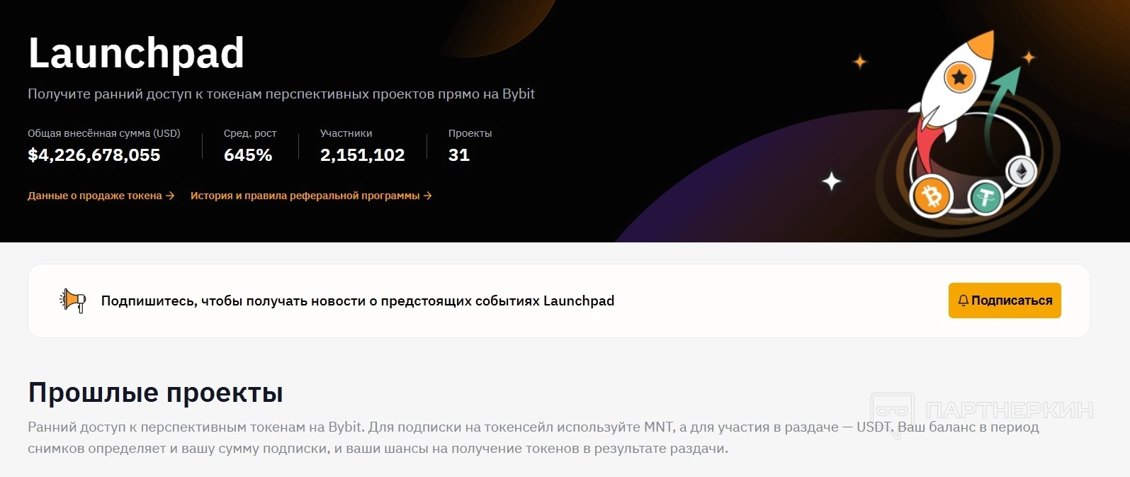 Bybit Launchpad предоставляет возможность получить ранний доступ к токенам перспективных криптовалютных проектов прямо на платформе