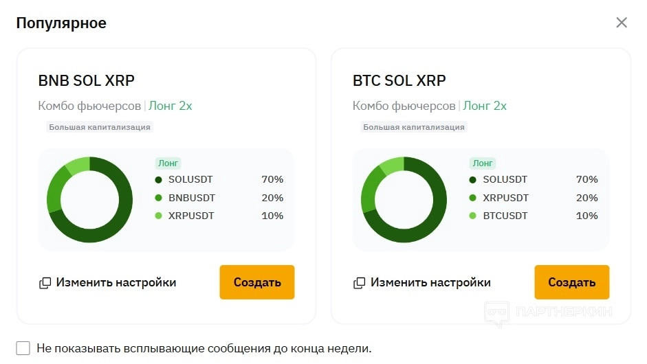 - DCA (Dollar-Cost Averaging) . Функция DCA позволяет инвестировать на автопилоте, распределяя покупки на определенные интервалы времени. Это помогает усреднить стоимость активов и снизить влияние волатильности рынка как в бычьих, так и в медвежьих условиях.