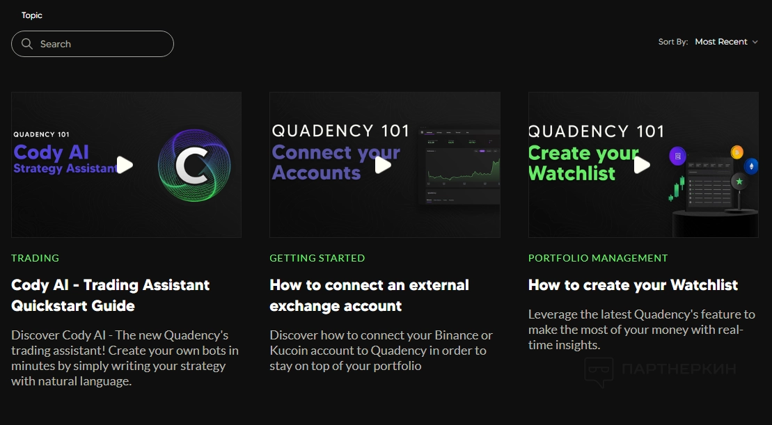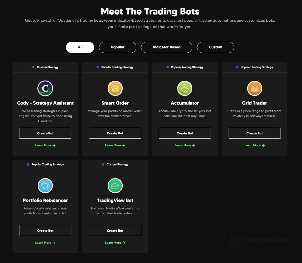 После подключения аккаунта на бирже пользователь получает доступ к выбору и настройке различных торговых ботов. Для упрощения этого процесса на платформе доступны обучающие видеоролики с пошаговыми инструкциями для людей.