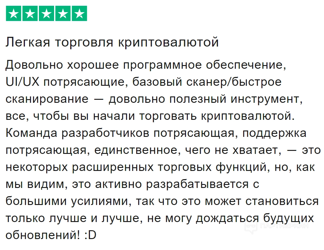 Другие пользователи положительно оценивают возможности управления несколькими биржами и сильную сторону