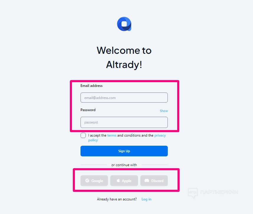 Нажав на нее, пользователь попадает на страницу регистрации, где нужно ввести свой электронный адрес и придумать пароль. Для удобства можно зарегистрироваться через Google, Apple или Discord, что значительно ускоряет процесс.