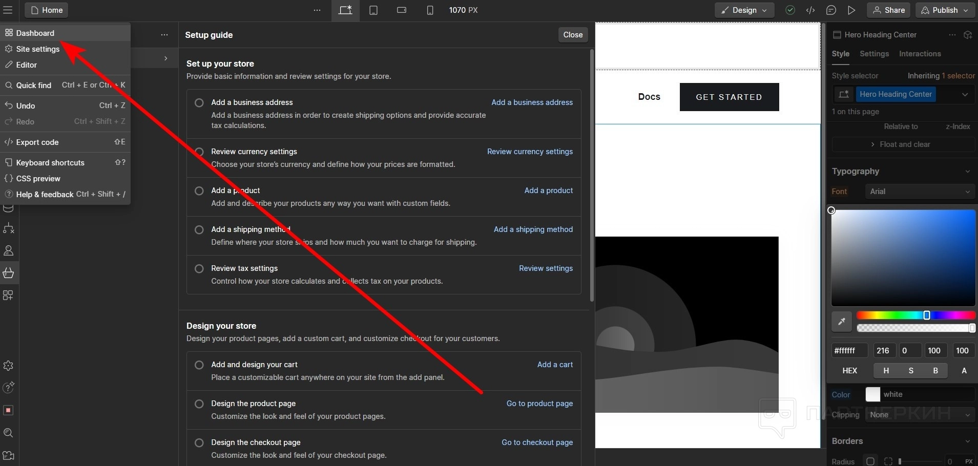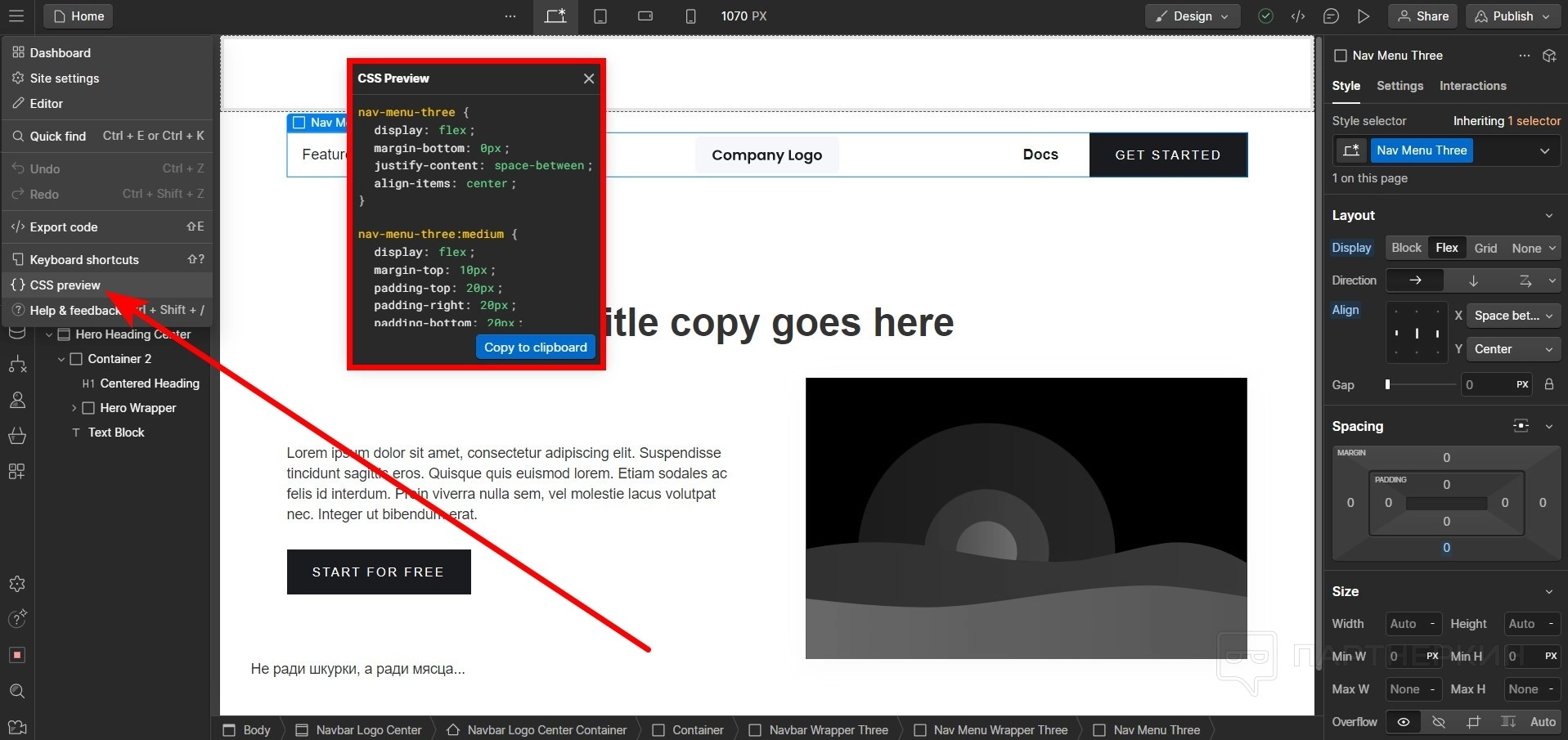- Можно сразу посмотреть и настроить CSS.