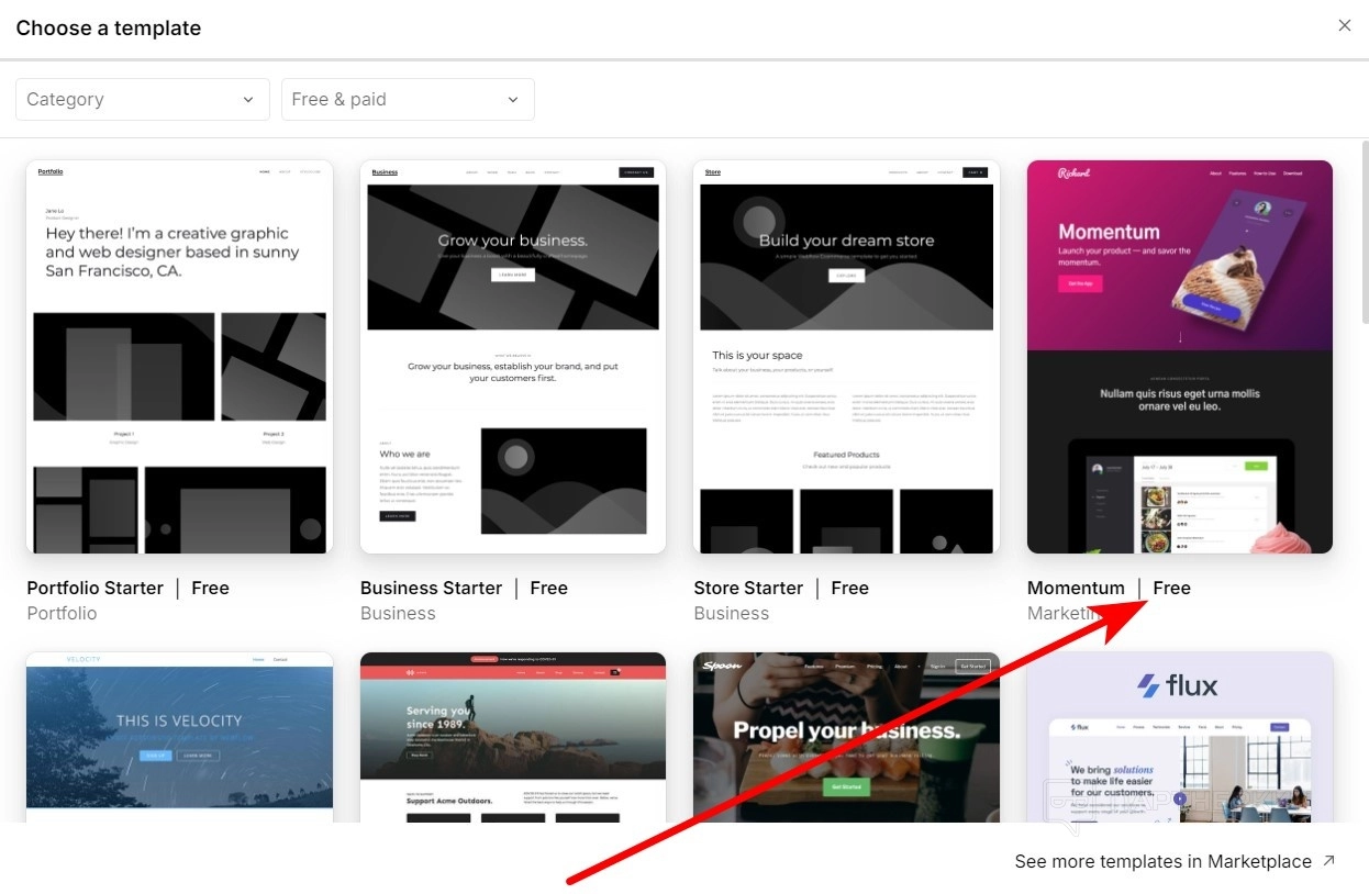 - На бесплатном тарифном плане ищите шаблоны с подписью Free . Платные начнут работать после перевода денежных средств.