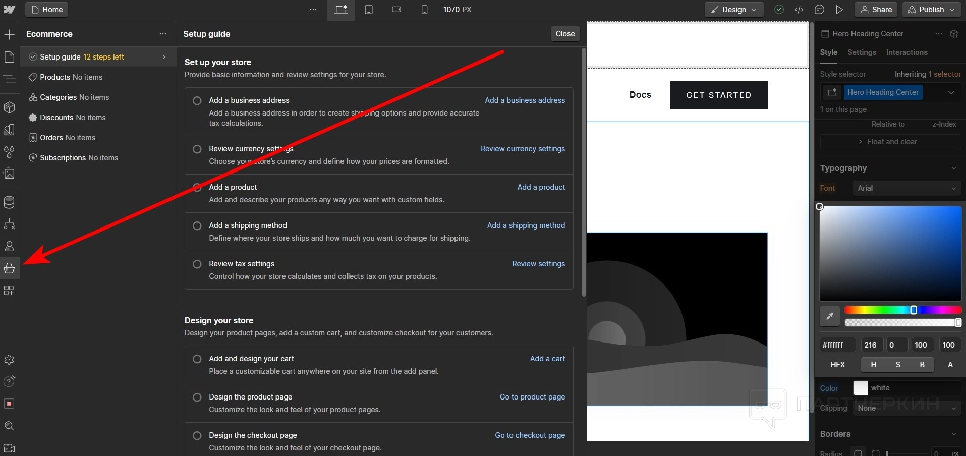При подключении функции e-commerce