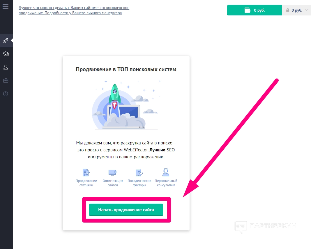 - Беззаботный запуск – настройка и запуск проекта продвижения специалистами WebEffector, за 599 ₽.