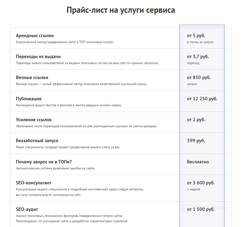 - Арендные ссылки – классический метод продвижения сайта в поисковых системах, стоимость начинается от 5 ₽ в месяц за запрос.