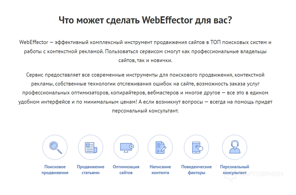- Продвижение через статьи . WebEffector предоставляет услуги по написанию и размещению статей с естественными ссылками. Это улучшает SEO и привлекает органический трафик за счет качественного контента.